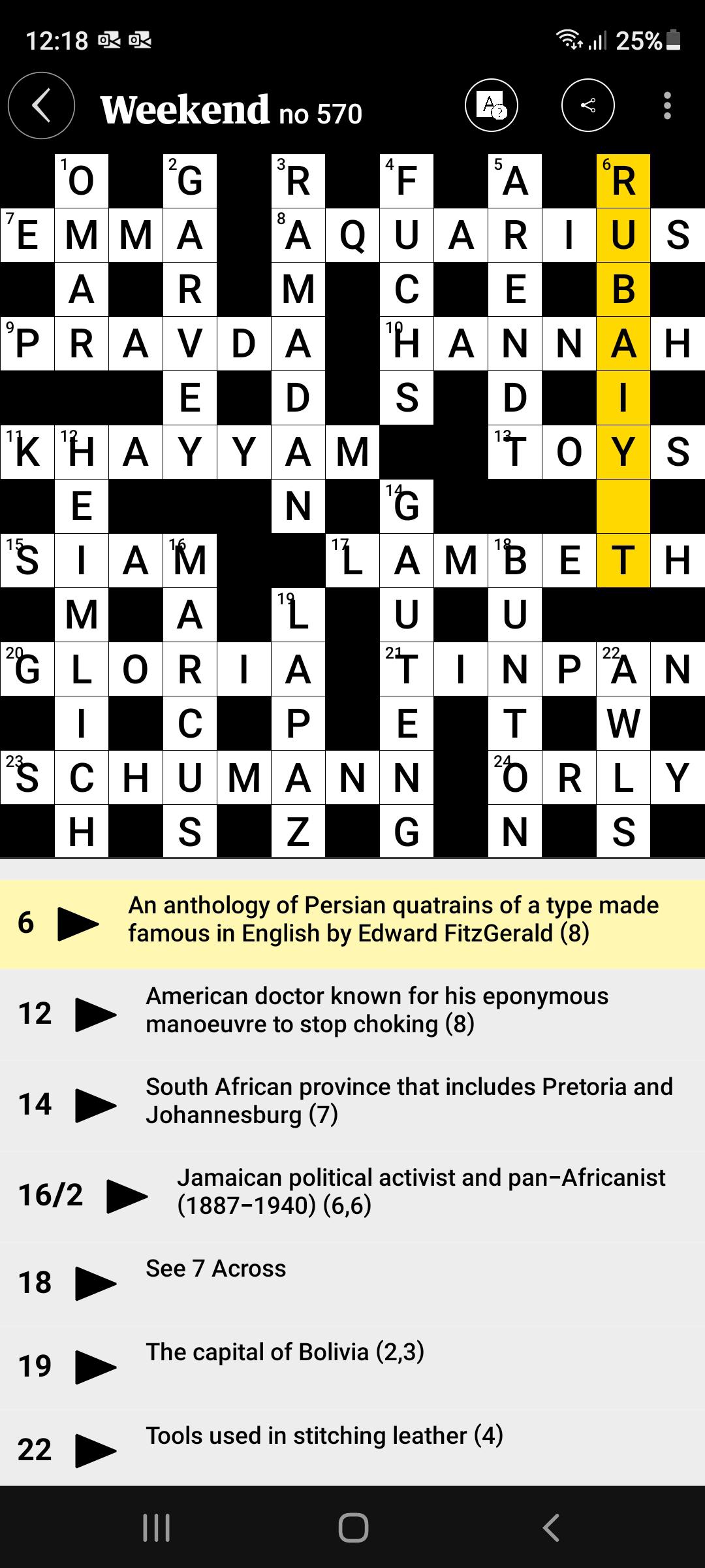 Serves me right for doing the Graun crossword. I've been through the entire alphabet and more