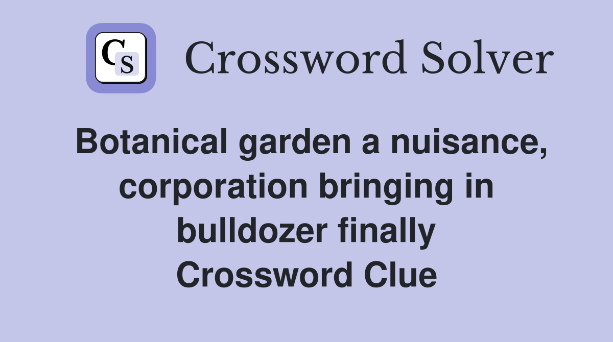 Botanical garden a nuisance, corporation bringing in bulldozer finally Crossword Clue Answers