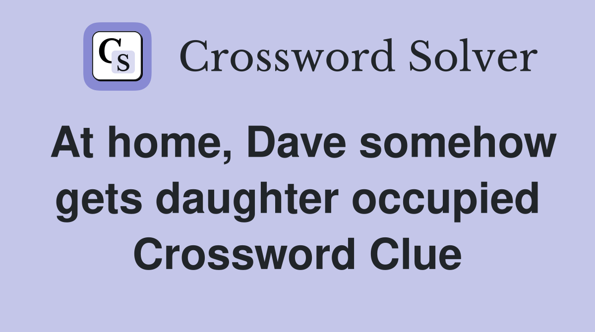 At home, Dave somehow gets daughter occupied Crossword Clue Answers Crossword Solver
