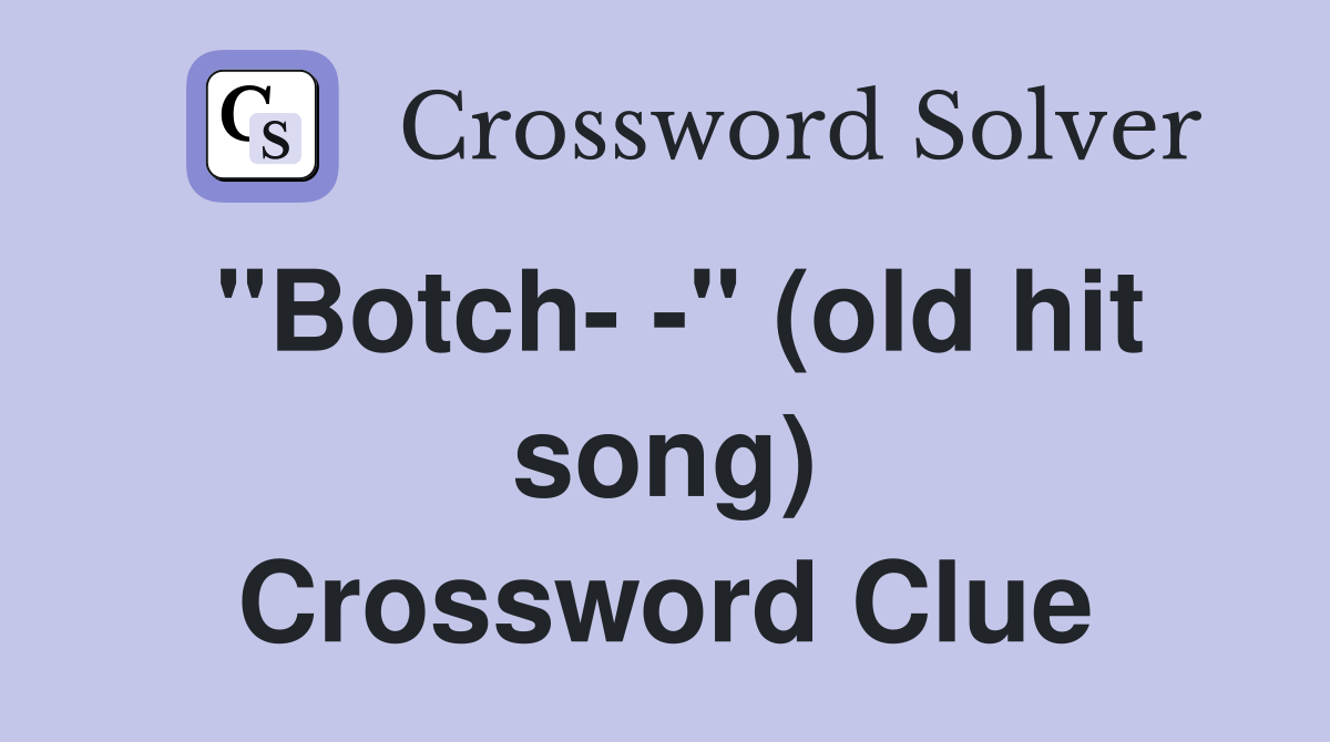 "Botch " (old hit song) Crossword Clue Answers Crossword Solver