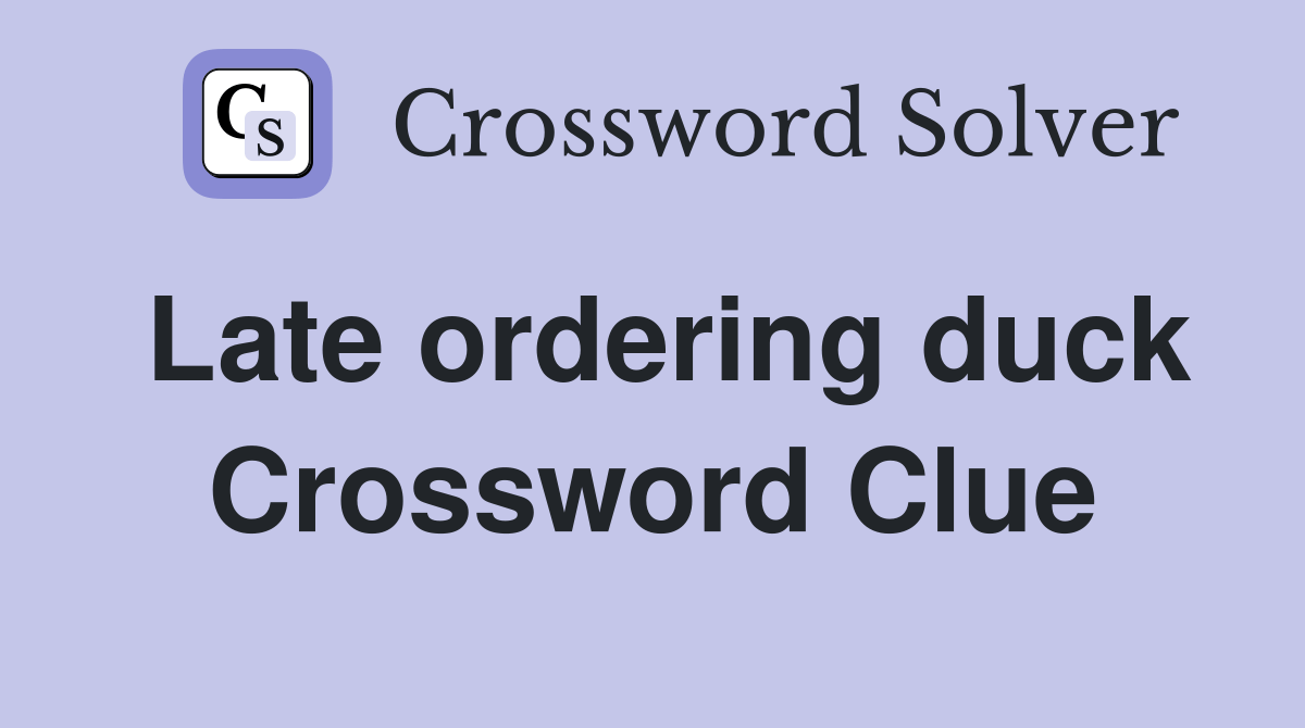 ' ordering ' is an anagram indicator. The crossword solver finds answers to. Web ' duck ' is the definition. Web here are the possible solutions for late ordering the duck clue. I believe the answer is:.