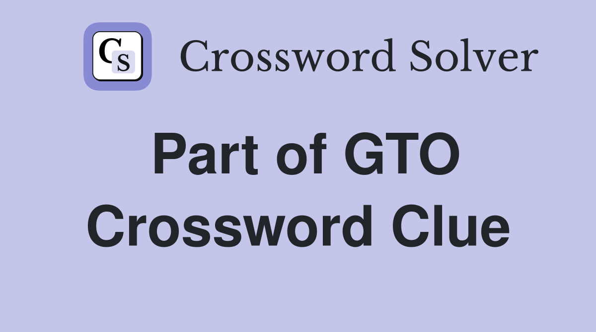 Web here is the answer for the: The crossword solver finds answers to classic. Web part of gto. Part of gto la times crossword.