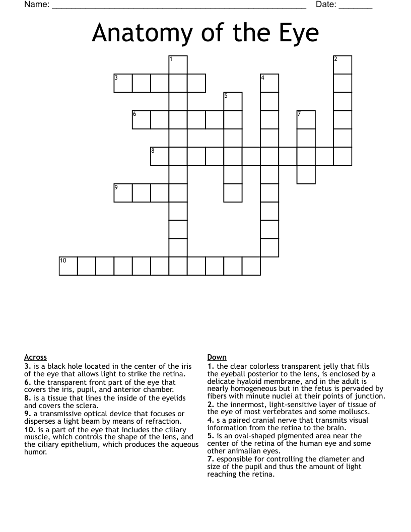 Anatomy of the Eye Crossword WordMint