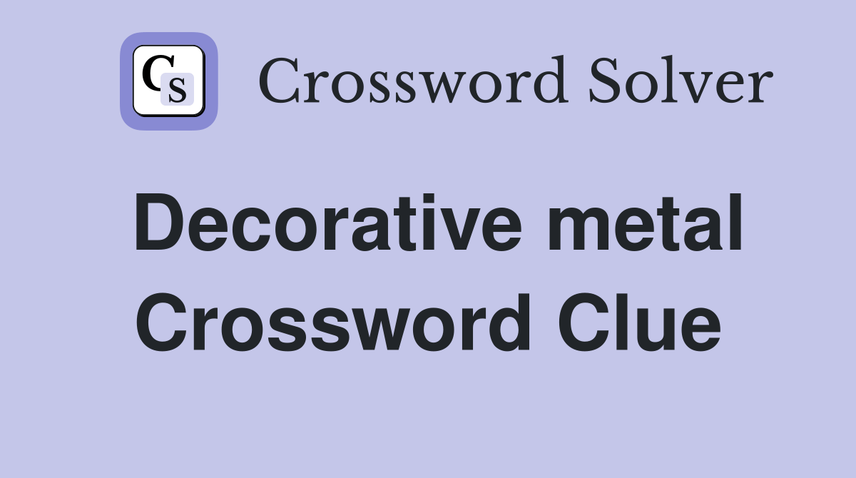 Web we have 1 solution for the frequently searched for crossword lexicon term plate metal. Crossword clue here is the answer for the crossword clue metal plate. If you haven't solved the crossword clue plates with a metal yet try. The crossword solver finds answers to.