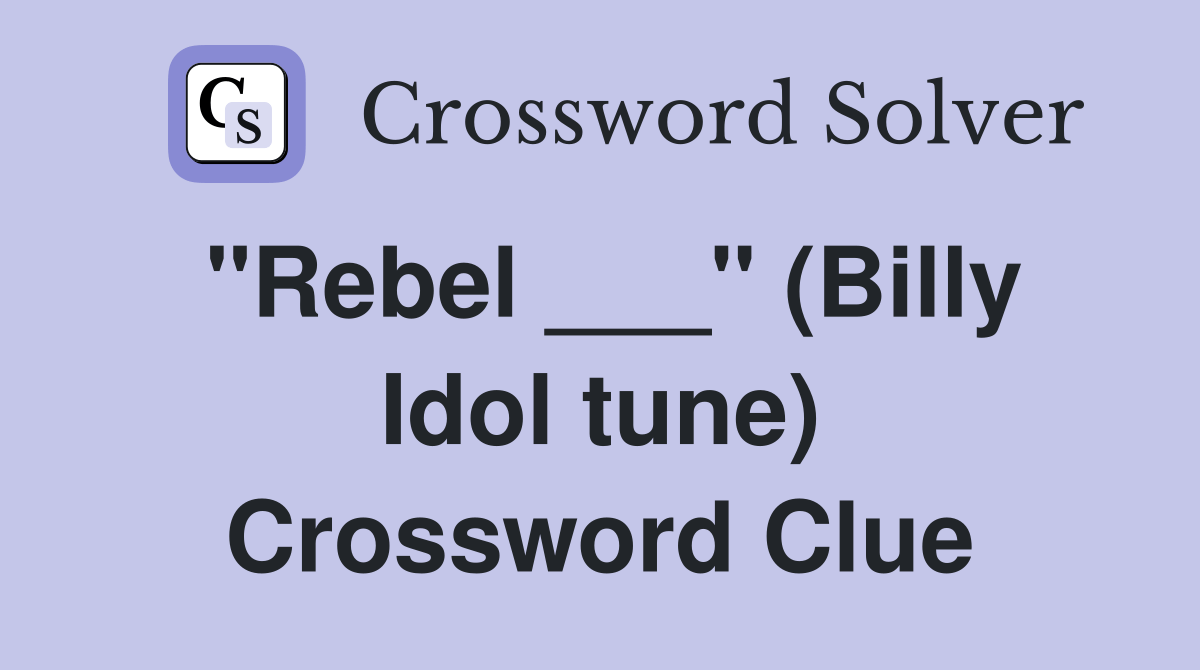 "Rebel ___" (Billy Idol tune) Crossword Clue Answers Crossword Solver