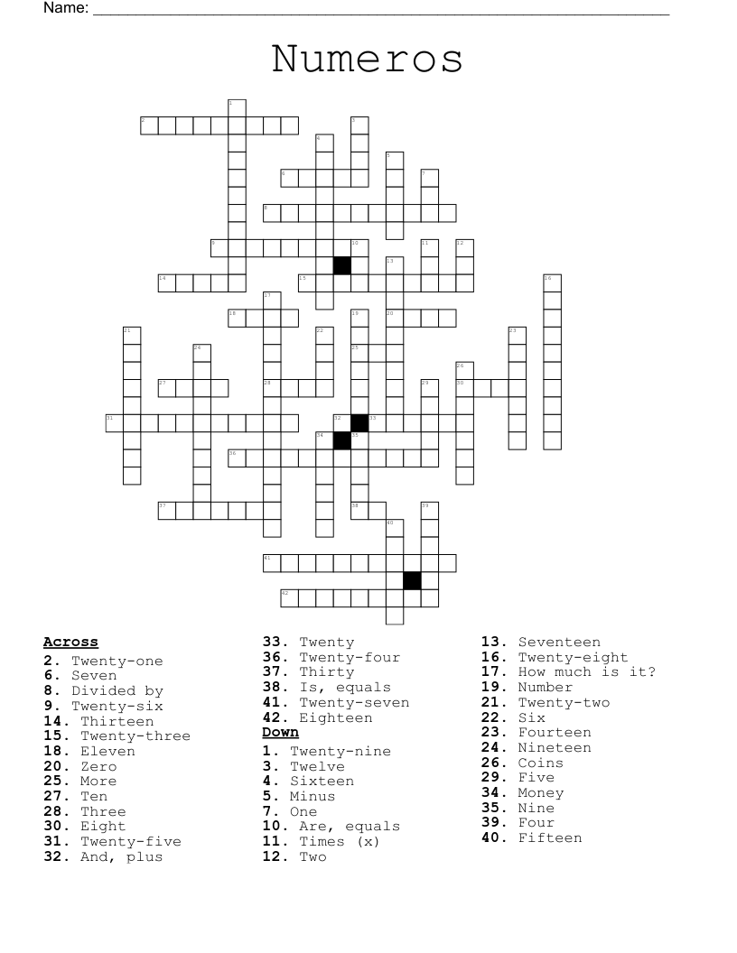 Numbers in English 0 20 Math Crossword Ressource pédagogique pour ton cours de Anglais