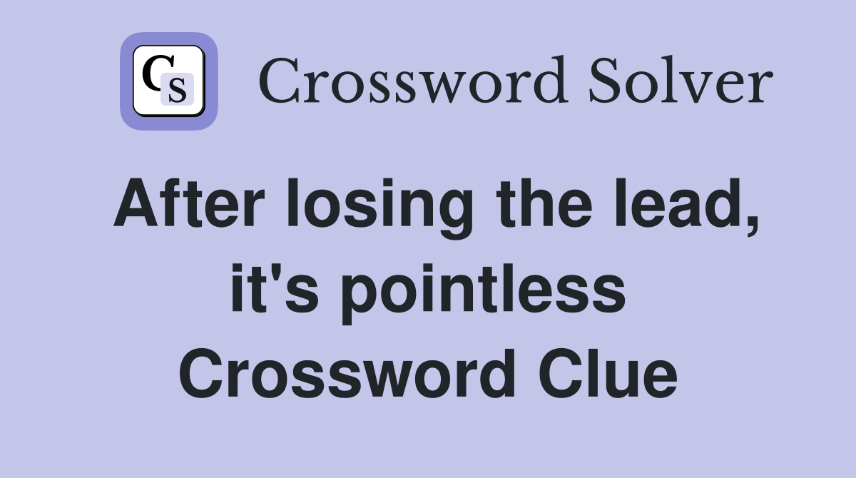 After losing the lead, it's pointless Crossword Clue Answers Crossword Solver