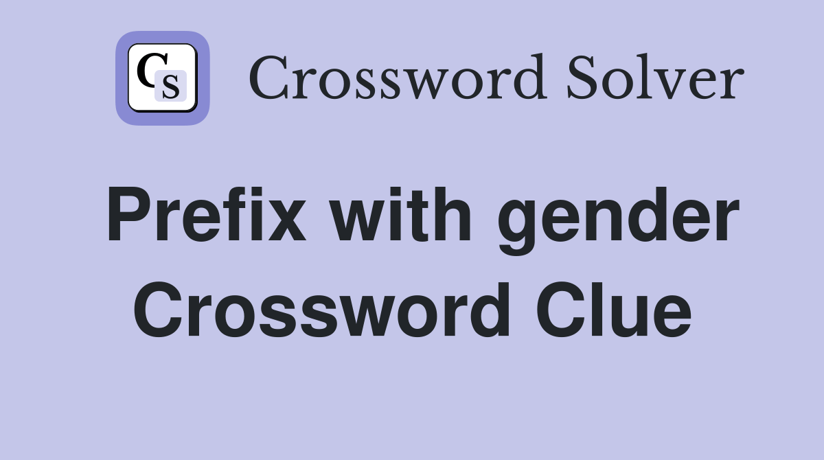 Web prefix with gender is a crossword puzzle clue that we have spotted 19 times. Web find the answer to the crossword clue prefix with gender in the new york times puzzle. Web while searching our database we found 1 possible solution for the: We cracked the code and found. There are related clues (shown below).