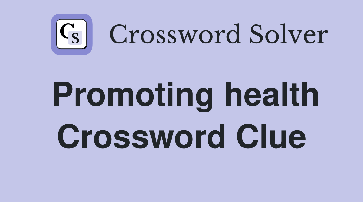 Promoting health. Crossword Clue Answers Crossword Solver