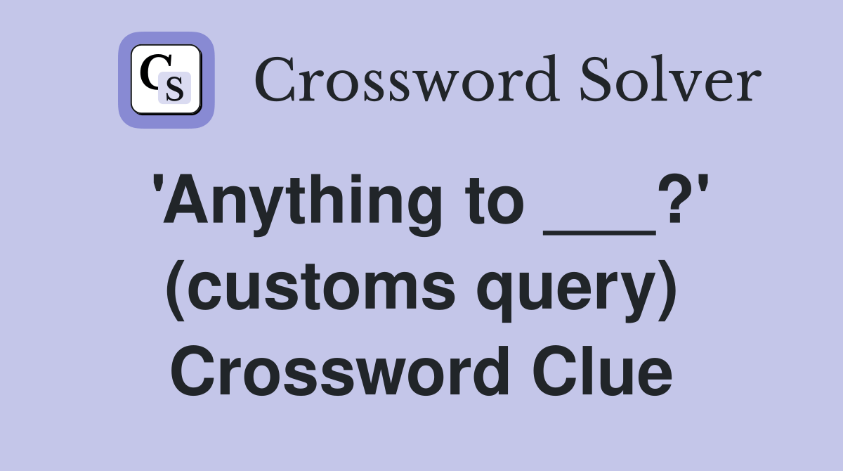 'Anything to ___?' (customs query) Crossword Clue Answers Crossword Solver