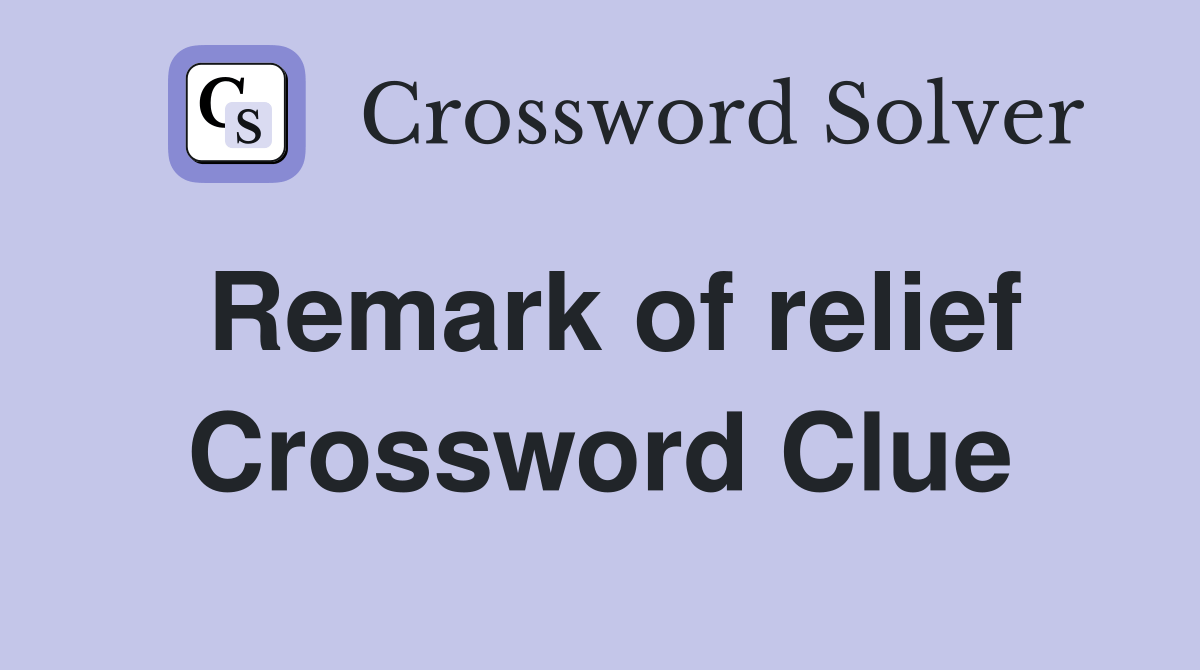 Crossword clue answers and solutions. Web we will try to find the right answer to this particular crossword clue. Web on this page you will find the rather impressive exclamation of relief? Web the crossword clue rather impressive exclamation of relief?