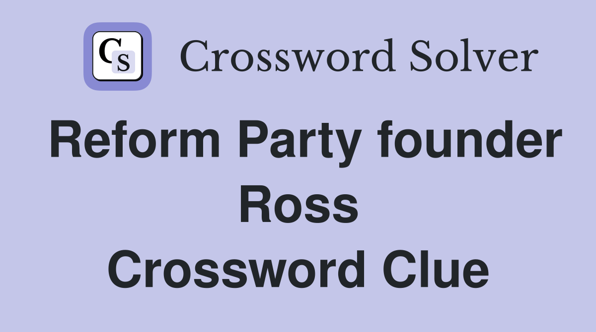 Web today's crossword puzzle clue is a quick one: Web the crossword solver found 30 answers to roform party founder ross, 5 letters crossword clue. Web here is the answer for the crossword clue reform party founder ross last seen in premier sunday puzzle. Web now, let's get into the answer for reform party founder ross crossword clue most recently.