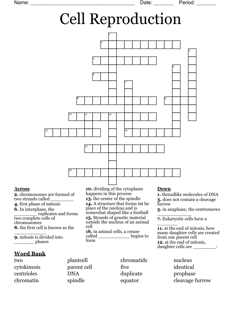 Biology Cell Reproduction (CH 8) Crossword WordMint