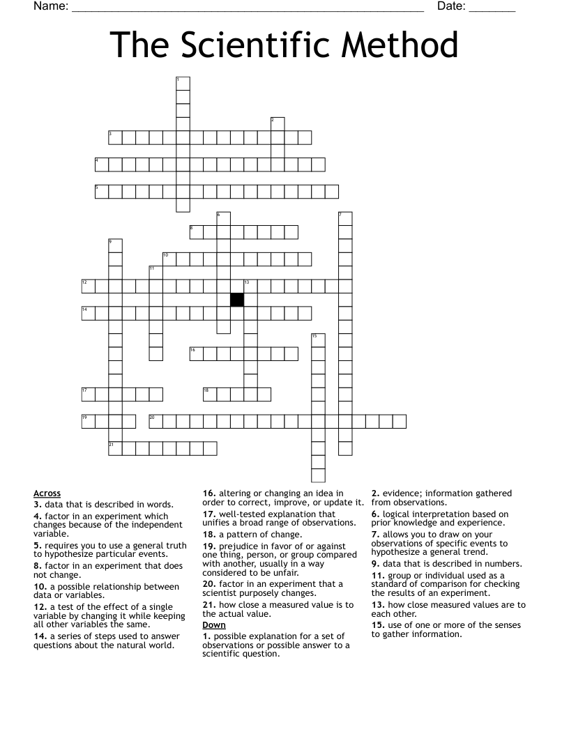 A detailed list of instructions on how to. Web scientific method crossword puzzle. Web the crossword solver found 30 answers to scientific method, 8 letters crossword clue. Web the scientific method crossword.