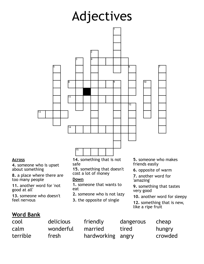 16 Adjectives, Crossword, Vocabulary Practice English ESL wo…