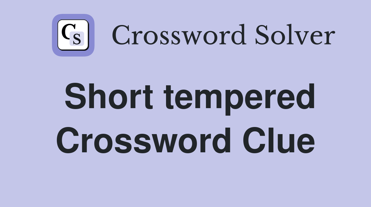 Web here is the answer for the crossword clue short tempered last seen in la times daily puzzle. We have found 40 possible. The crossword solver finds answers. Web today's crossword puzzle clue is a quick one:
