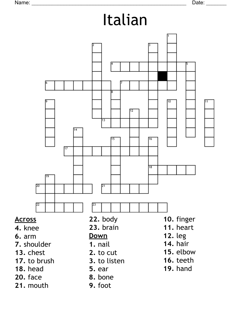 Printable Crossword Puzzles In Italian Printable Crossword Puzzles