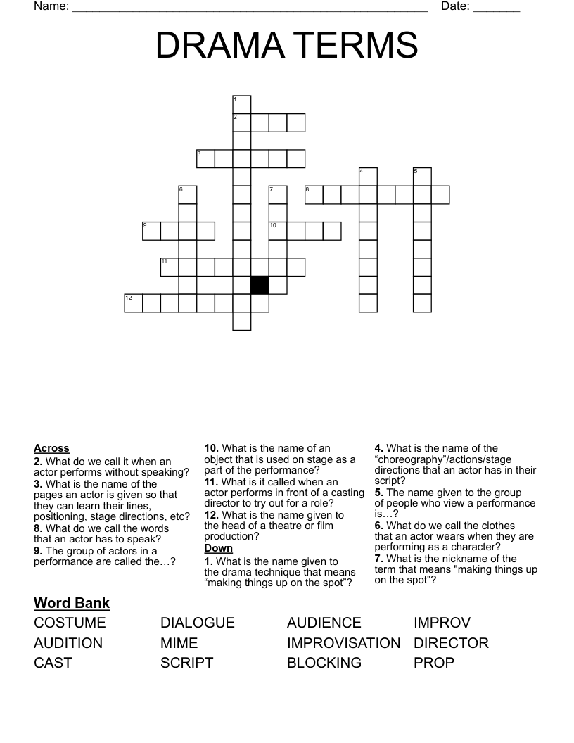Drama Words Crossword Puzzle