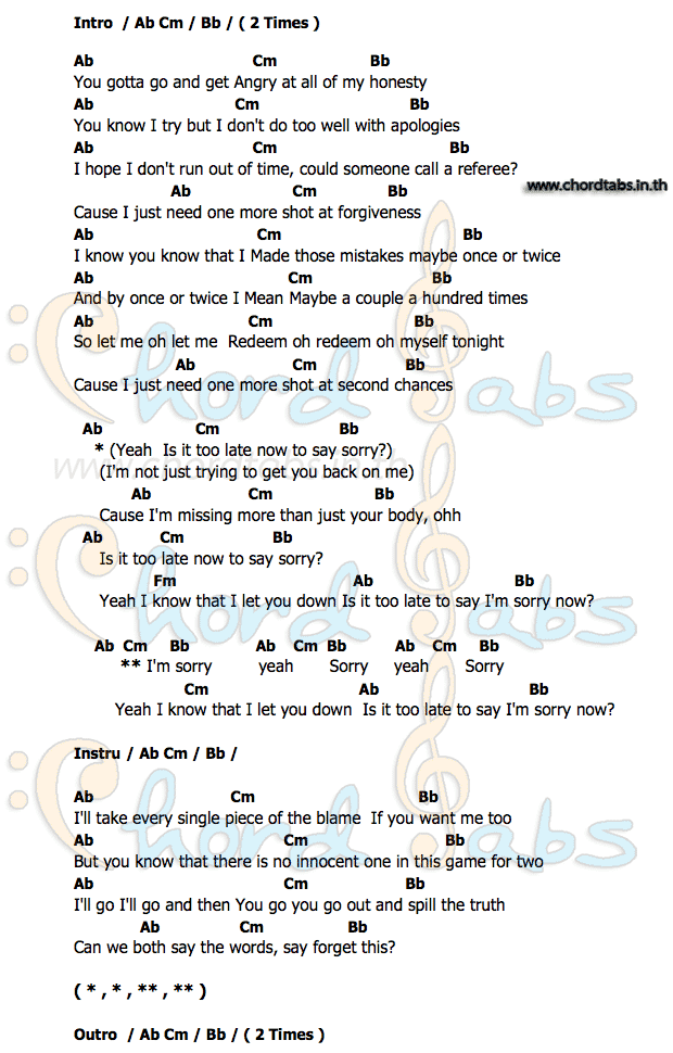 Sorryคอร์ด คอร์ด Sorry JUSTIN BIEBER