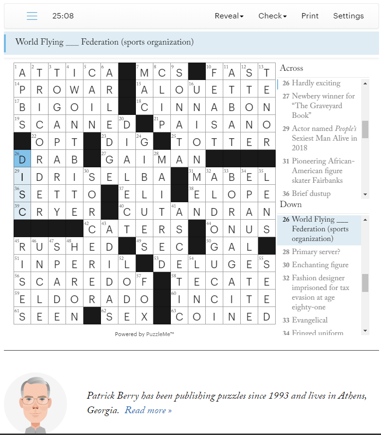 WFDF featured in today's New Yorker Crossword Puzzle! (Crossword Spoilers if anyone cares) r