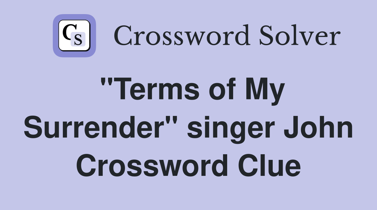 "Terms of My Surrender" singer John Crossword Clue Answers Crossword Solver
