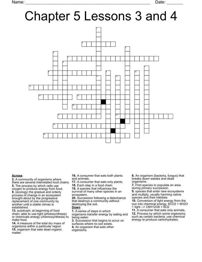 Chapter 5 Lessons 3 and 4 Crossword WordMint