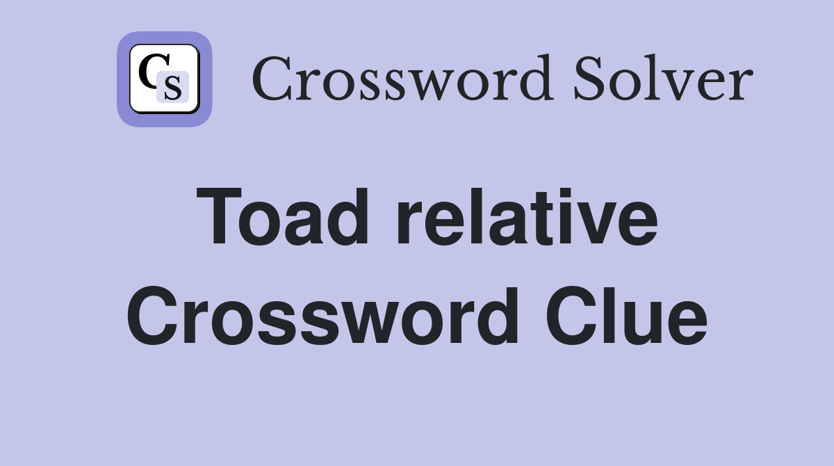 Here is the answer for the crossword clue toad relative last seen in newsday puzzle. Web toad relative is a crossword puzzle clue that we have spotted 2 times. There are related clues (shown below). We have 1 solution for the frequently searched for crossword lexicon term.