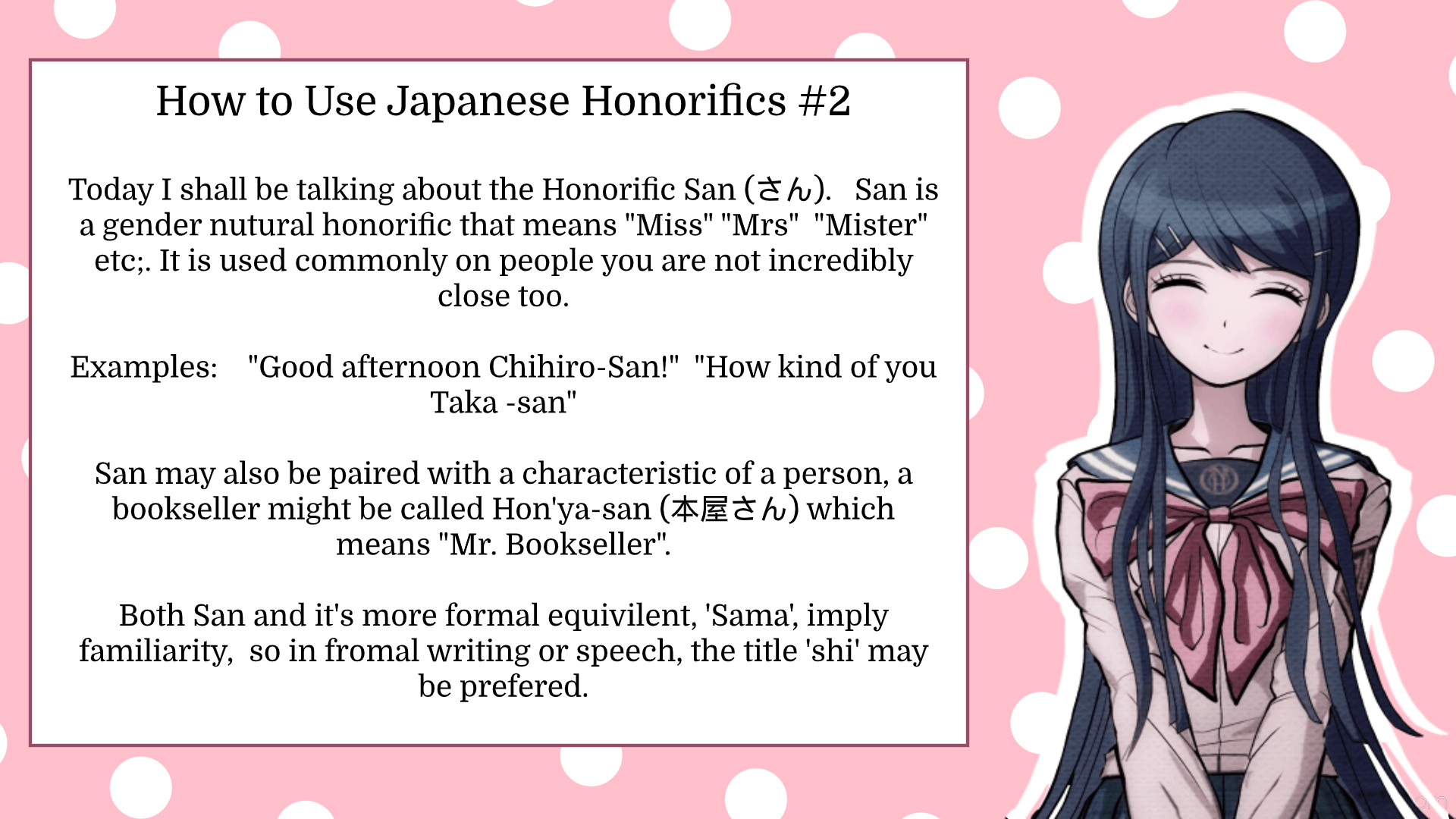 How to Use Japanese Honorifics with... Me! 2 How to Use San! r/danganronpa