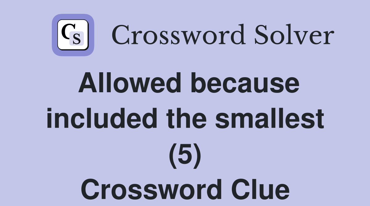 Allowed because included the smallest (5) Crossword Clue Answers Crossword Solver