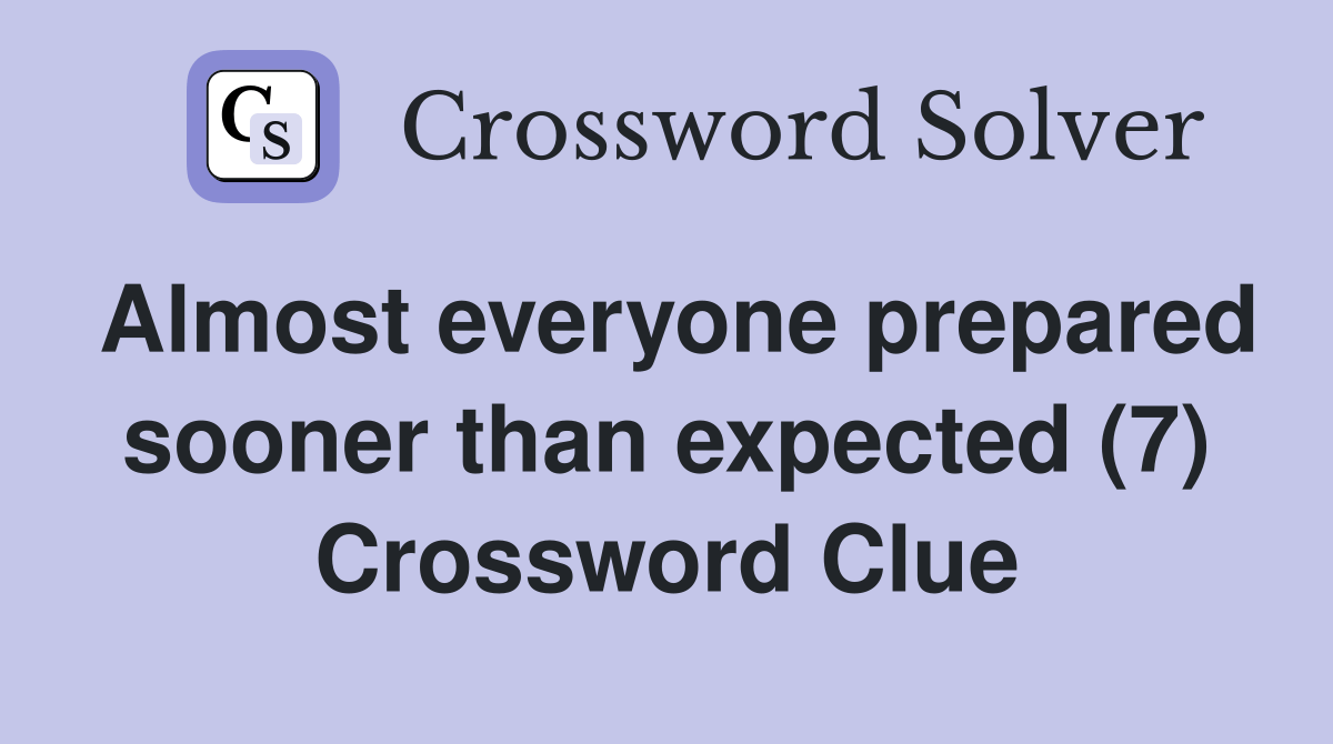 Almost everyone prepared sooner than expected (7) Crossword Clue Answers Crossword Solver