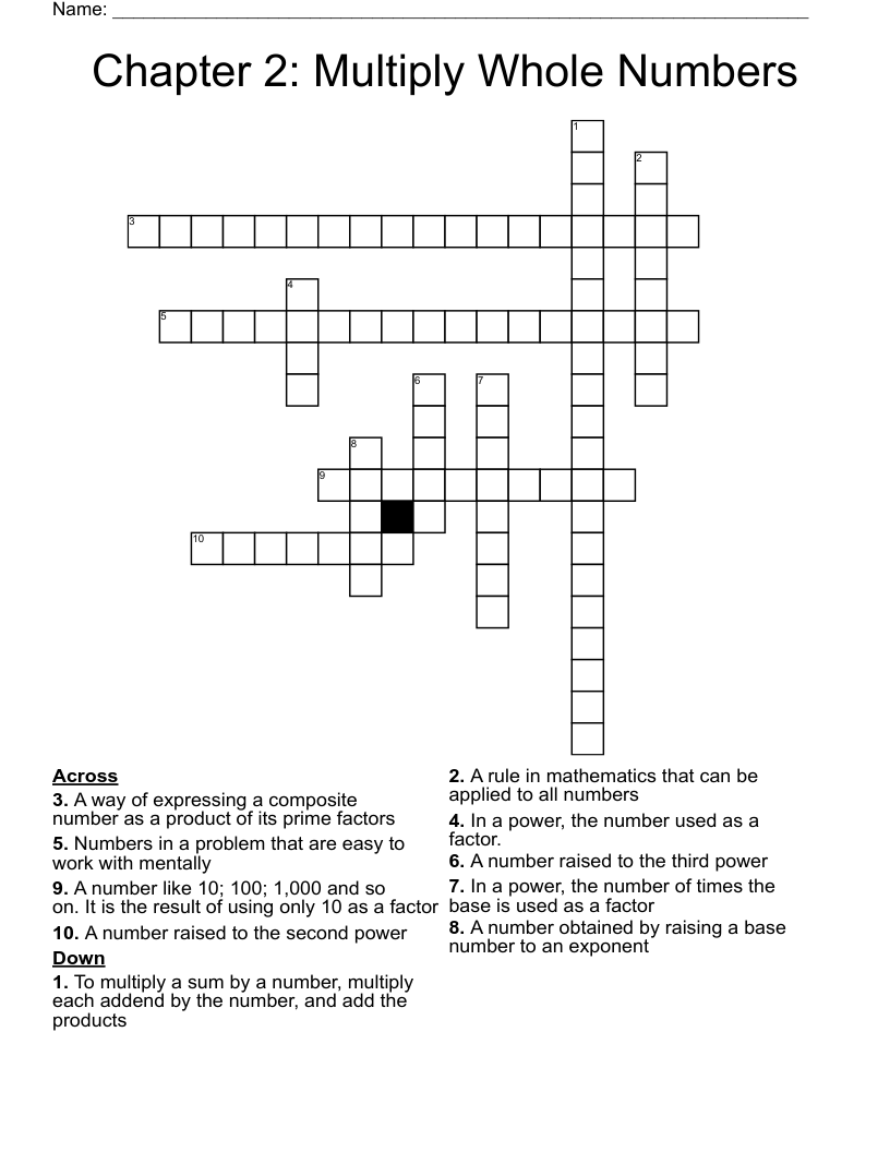 Chapter 2 Multiply Whole Numbers Crossword WordMint