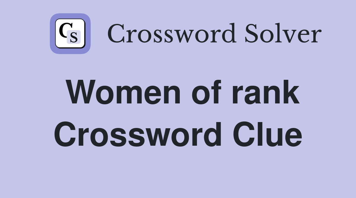Web Our Crossword Solver Found 10 Results For The Crossword Clue Woman Of Rank.