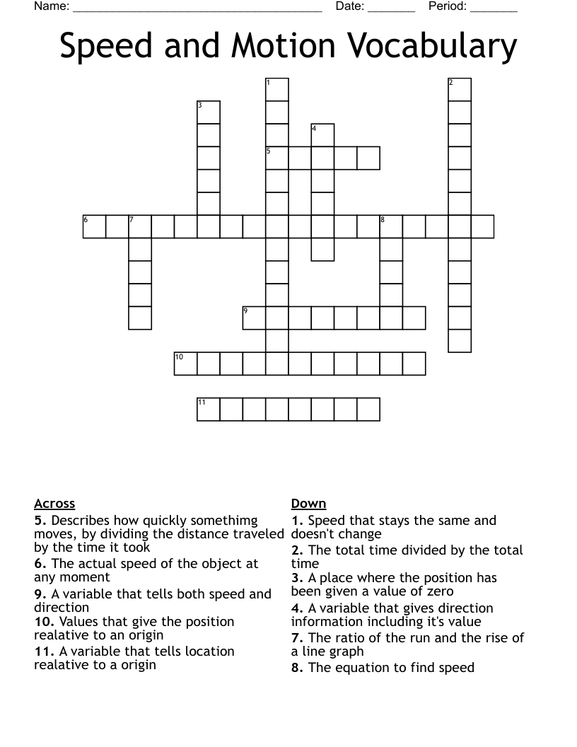Speed and Motion Vocabulary Crossword WordMint