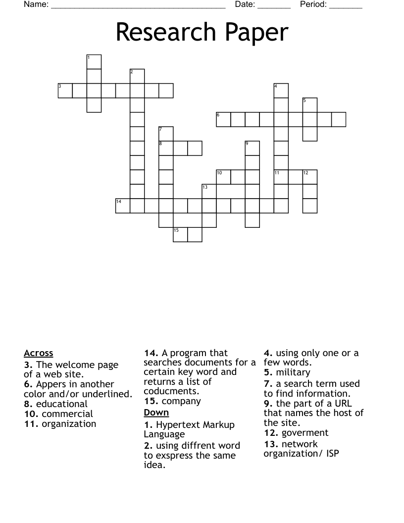 Research Paper Crossword WordMint