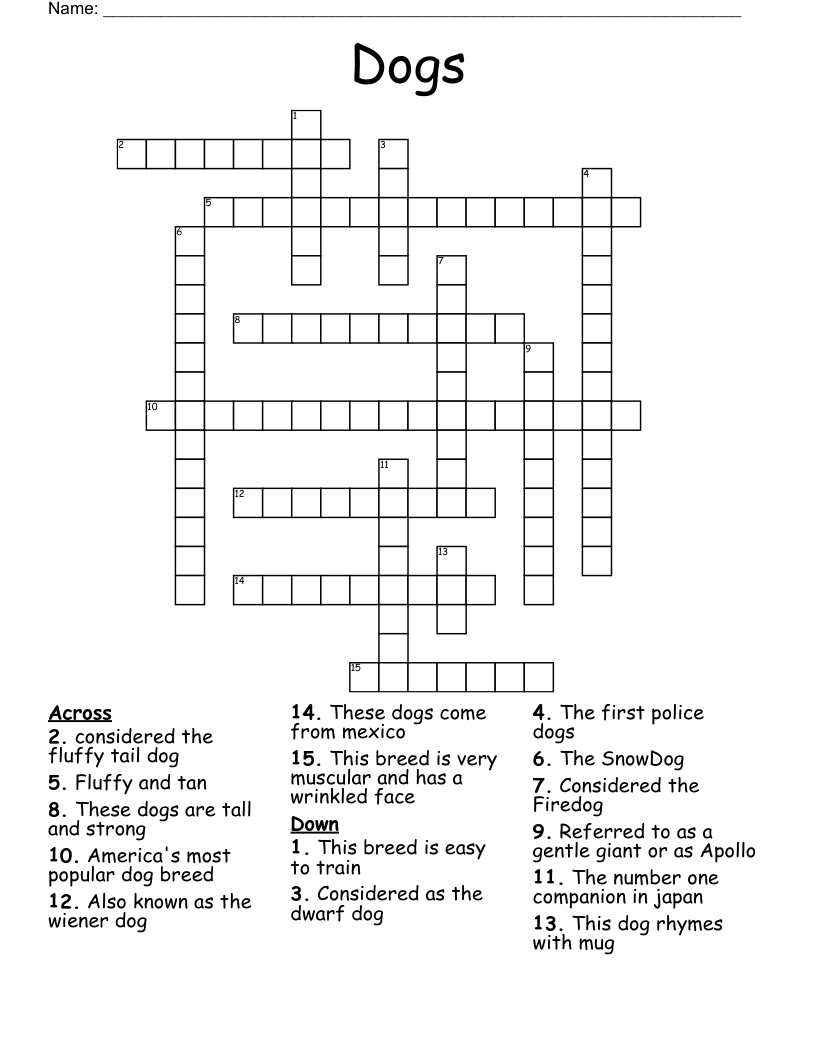 Dogs Crossword Puzzles